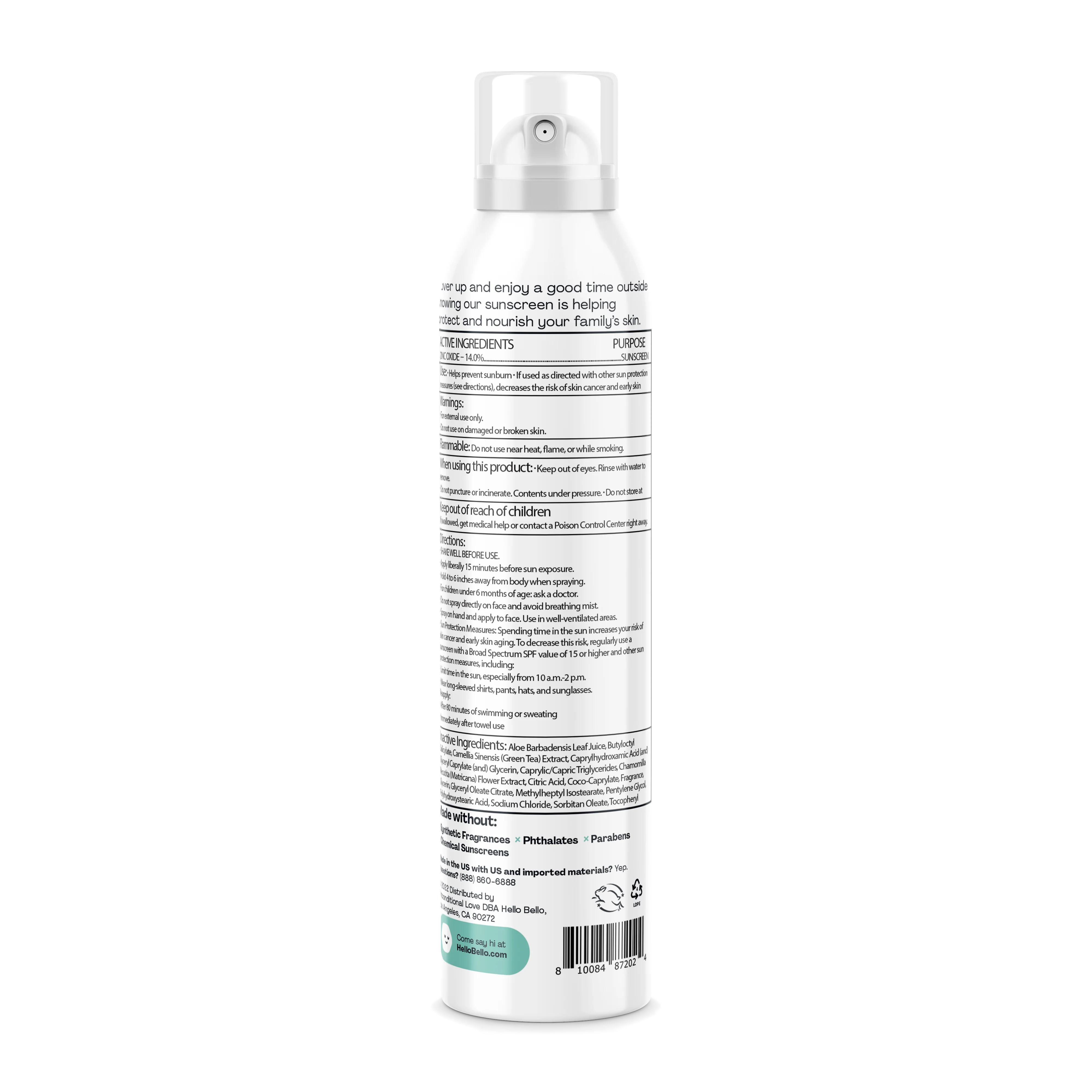 {"description": "For hard-to-reach spots or hard-to-wrangle kids, Hello Bello’s Mineral Sunscreen Spray provides convenient, broad-spectrum protection using non-nano zinc oxide while moisturizing with sunflower and safflower oils.", "features": ["Parent Tested, Parent Approved Winner", "Broad Spectrum UVA and UVB SPF Protection", "Reef friendly", "Quick, Even Coverage", "Moisturizing and non-greasy", "Vegan and cruelty-free"], "hex": {"Manual": "#FDC845", "Continuous": "#FDC845"}}